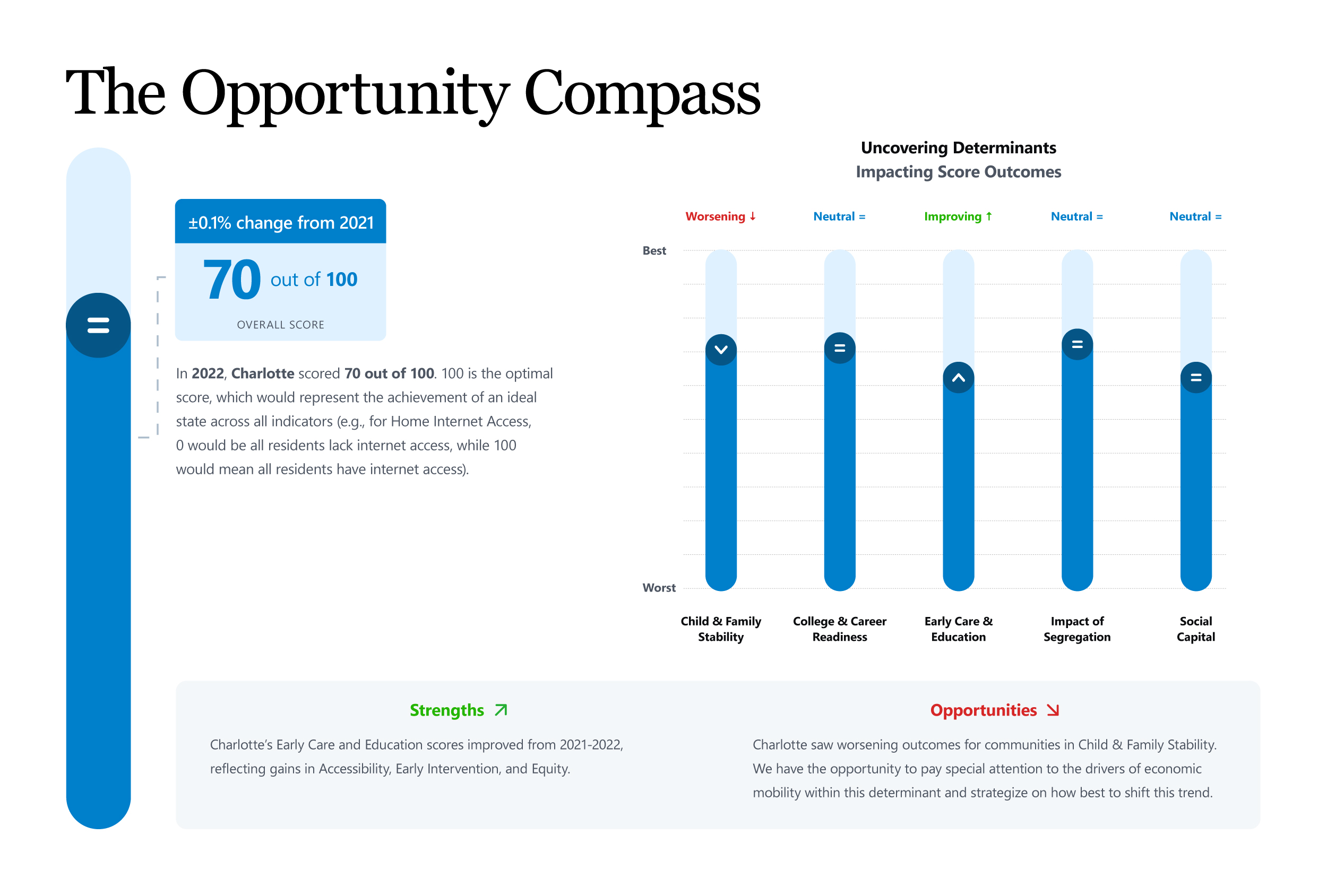 Using publicly available data from 2015-22, the Compass establishes Charlotte-Mecklenburg’s baseline for future progress.